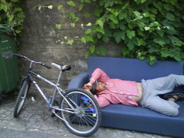 Dizem que conduzir é perigoso quando se tem apneia do sono pois este senhor achou que devia estacionar o bólide e fazer uma sesta no sofá de modo a prevenir algum acidente.