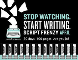 Script Frenzy is an international writing event in which participants take on the challenge of writing 100 pages of scripted material in the month of April. As part of a donation-funded nonprofit, Script Frenzy charges no fee to participate; there are also no valuable prizes awarded or "best" scripts singled out. Every writer who completes the goal of 100 pages is victorious and awe-inspiring and will receive a handsome Script Frenzy Winner's Certificate and web icon proclaiming this fact.