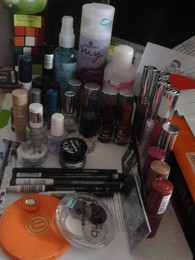 Hoje achei que era giro arrumar a minha caixa e estojo de maquilhagem e deparei-me com uma festa da essence. Eu sei que tenho algumas coisas mas visto assim fico assustada.