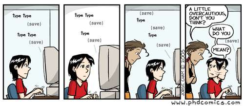 Quantos de vocês são assim? Eu tenho de admitir que sou um bocado stressada com isso, acada parágrafo faço Ctrl+G (que o meu office está em português). Para prevenir desastres ainda tenho tudo guardado na dropbox e ainda bem que já me poupou alguns ataques cardíacos. Além disso os docs ficam disponíveis em qualquer aparelhito desde que faça login na minha conta o que acaba por ser super prático. E vocês? O que usam?