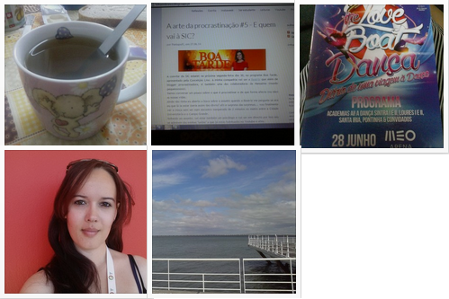 1.Um chá para começar o dia \2. Post sobre um convite feito pela SIC \3. Folheto do espectáculo Ai a Dança! \4. Mais um dia no Futebol Park \5. Parque das Nações ao final da tarde (de ontem)