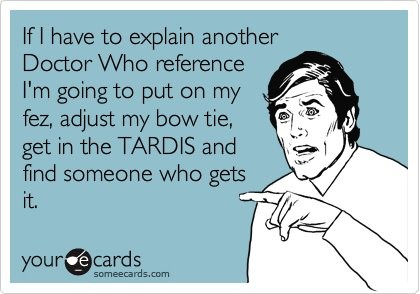 É difícil ser Whovian, principalmente em minha casa onde sou a única pessoa a ver Doctor Who. Tento fazer uma piada... well, normalmente sai de forma natural e automática e fica tudo a olhar para mim como se fosse um alien. I have a sad sad life...