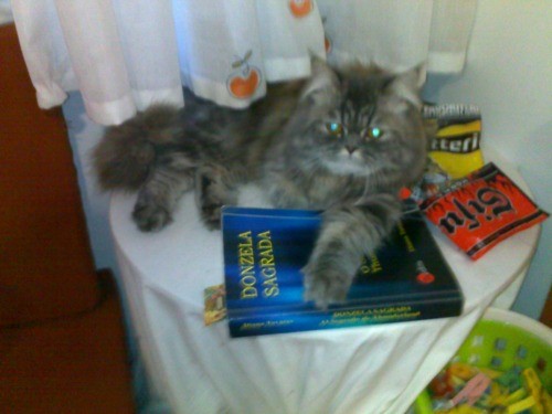 O gato em questão é o Sushi e pertence à menina Pinguicha. Continua assim Sushi, só não me estragues o livro ok? xD