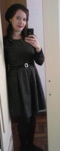 Andei que tempos em busca de um vestido preto às bolinhas brancas que não me ficasse tipo saco de batatas ou que fosse a um preço absurdo. No entanto num belo dia encontrei este na HTL e apaixonei-me imediatamente. A parte boa é que de inverno basta usar uma camisola leve por baixo e tadaa problema resolvido.