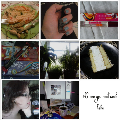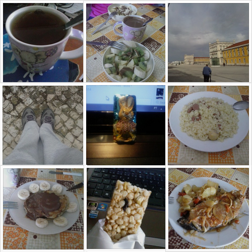 1. Tea time \ 2. Fondue de fruta \ 3. Ver o rio pela manhã \ 4.Caminhar e tentar relaxar \ 5. O último coelhinho de chocolate... \ 6. Massa com salsichas e ovo \ 7. Panquecas com chocolate e banana \ 8. As minhas barritas salva-vidas \ 9. Perca assada no forno