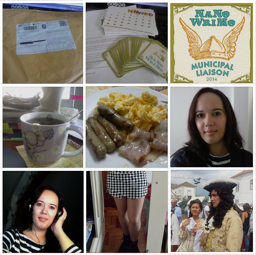 1. Uma encomenda vinda de longeeeee \2. Os autocolantes deste ano! \3. Mais um ano como ML, no próximo logo se vê \4. Chá para ajudar a relaxar durante o trabalho \5. Podia ser um pequeno-almoço inglês mas foi o meu jantar :p \6. Em modo Outono e com o cabelo menos vermelho \7. O trabalho é sempre acompanhado de música \8. Demorou, mas aqui ficam os skorts que comprei no Verão xD \9. Uma visita ao passado em S. Julião do Tojal